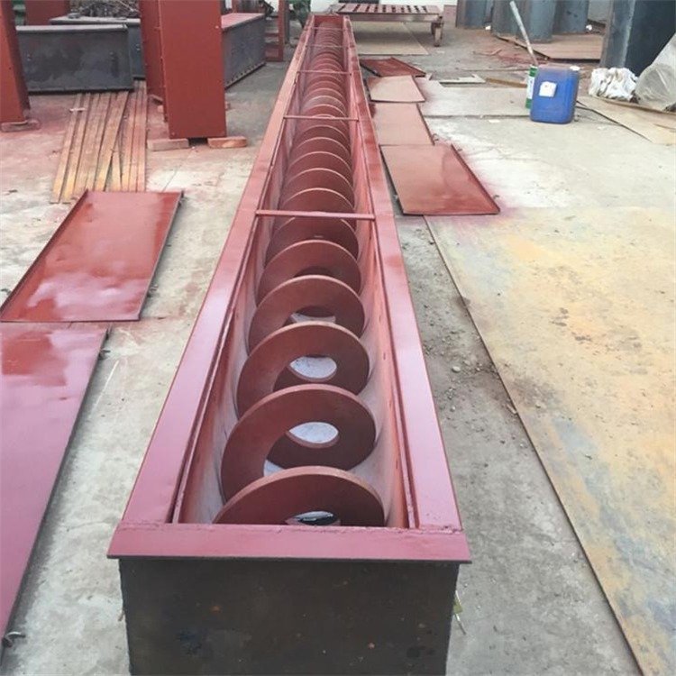 當(dāng)螺旋軸轉(zhuǎn)動時,由于物料的重力及其與槽體壁所產(chǎn)生的摩擦力,使物料只能在葉片的推送下沿著輸送機的槽底向前移動,其情況好像不能旋轉(zhuǎn)的螺母沿著旋轉(zhuǎn)的螺桿作平移運動一樣。物料在中間軸承的運移,則是依靠后面前進著的物料的推力。所以,物料在輸送機中的運送,完全是一種滑移運動。為了使螺旋軸處于較為有利的受拉狀態(tài),一般都將驅(qū)動裝置和卸料口安放在輸送機的同一端,而把進料口盡量放在另一端的尾部附近。 旋轉(zhuǎn)的螺旋葉片將物料推移而進行輸送,使物料不與螺旋輸送機葉片一起旋轉(zhuǎn)的力是物料自身重量和螺旋輸送機機殼對物料的摩擦阻力。葉片的面型根據(jù)輸送物料的不同有實體面型、帶式面型、葉片面型等型式。
